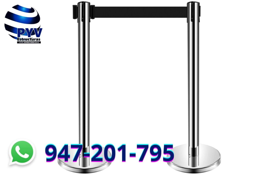 Postes/balaustres: Son los soportes verticales que sostienen la cinta . Pueden ser portátiles y fáciles de instalar.