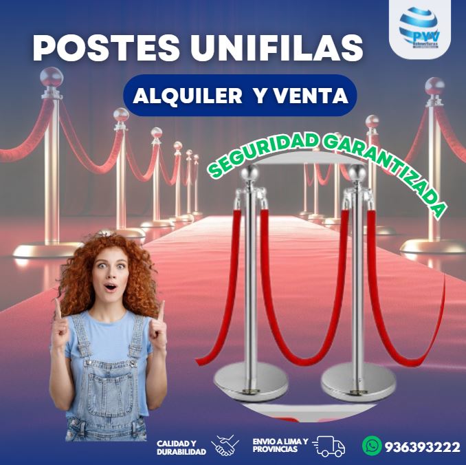 Estos elementos están fabricados con materiales resistentes a golpes, movimientos constantes y cambios de ambiente. Su base robusta les da estabilidad incluso cuando hay bastante tránsito, mientras que su cinta retráctil de seguridad hace posible formar líneas continuas o perímetros en cuestión de segundos. Su apariencia elegante también permite que combinen con cualquier tipo de entorno, desde centros comerciales y bancos hasta aeropuertos, ferias, conciertos o áreas corporativas. Son fáciles de limpiar, simples de transportar y muy eficientes para dividir espacios sin afectar la estética del lugar.