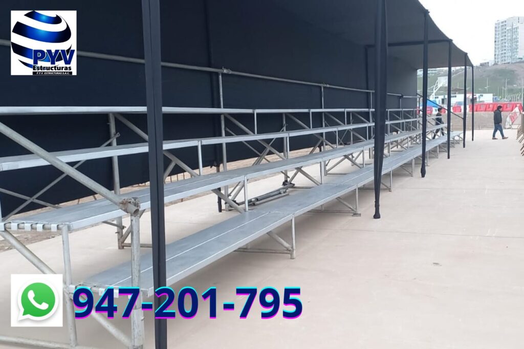 Asegura el éxito de tu evento con nuestras graderías seguras y confiables. En PYV ESTRUCTURAS, entendemos la importancia de la seguridad en cualquier evento. Por eso, te ofrecemos nuestras graderías de alta calidad con las máximas medidas de seguridad, garantizando la tranquilidad de tus invitados y el éxito de tu ocasión especial.